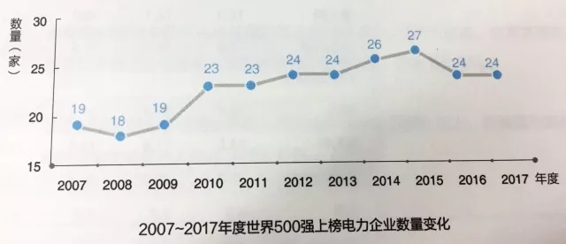 一是上榜多。2007-2017年世界500強(qiáng)上榜電力基本穩(wěn)定在24家左右,中國上榜電力企業(yè)由2家增加至8家,數(shù)量占比由1/10上升至1/3,國家電網(wǎng)公司排名穩(wěn)居世界前列,近兩年蟬聯(lián)世界500強(qiáng)第二位,也是唯一進(jìn)入世界500強(qiáng)前10位的電力企業(yè)。