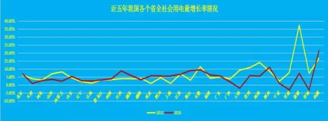 另外,受到區(qū)域產(chǎn)業(yè)結(jié)構(gòu)影響,2012年,我國(guó)西部地區(qū)全社會(huì)用電量曾經(jīng)出現(xiàn)大幅度上升現(xiàn)象,而隨著我國(guó)經(jīng)濟(jì)結(jié)構(gòu)調(diào)整加速,以及區(qū)域產(chǎn)業(yè)升級(jí)影響,我國(guó)東部、西部地區(qū)全社會(huì)用電量增速明顯放緩,中部地區(qū)則出現(xiàn)了相對(duì)較高的增長(zhǎng)率,如河南、江西、安徽,2016年全社會(huì)用電量增長(zhǎng)率居于全國(guó)領(lǐng)先水平。從全社會(huì)用電量增速上看,該區(qū)域經(jīng)濟(jì)增長(zhǎng)內(nèi)生動(dòng)力較為強(qiáng)勁。