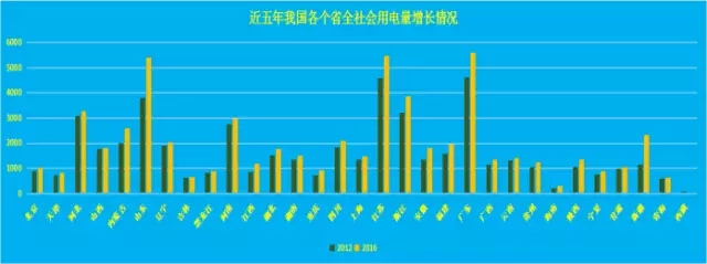 2012年,我國(guó)全社會(huì)用電量49657億千瓦時(shí),居于世界第一位,2016年已經(jīng)達(dá)到59747億千瓦時(shí)(全口徑)。五年,我國(guó)全社會(huì)用電量增長(zhǎng)10090億千瓦時(shí),增幅達(dá)20%,無(wú)論是從全社會(huì)用電量基數(shù),還是增幅上看,均居于世界首