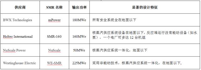 斯托特:這是第一個專注于SMR的早期場址許可(ESP)的申請。TVA的申請基于核電機組的參數(shù)“包絡”,包含美國開發(fā)的四個輕水堆型的SMR:BWX聯(lián)合技術公司開發(fā)的mPower設計,Holtec國際公司的SMR-160,NuScale能源公司的SMR和西屋電氣有限公司的SMR(見附表與附圖)??肆制婧禹椖康闹饕繕酥皇峭ㄟ^消除幾個潛在的應急情景,展示SMR先進的安全和安保設計特征。