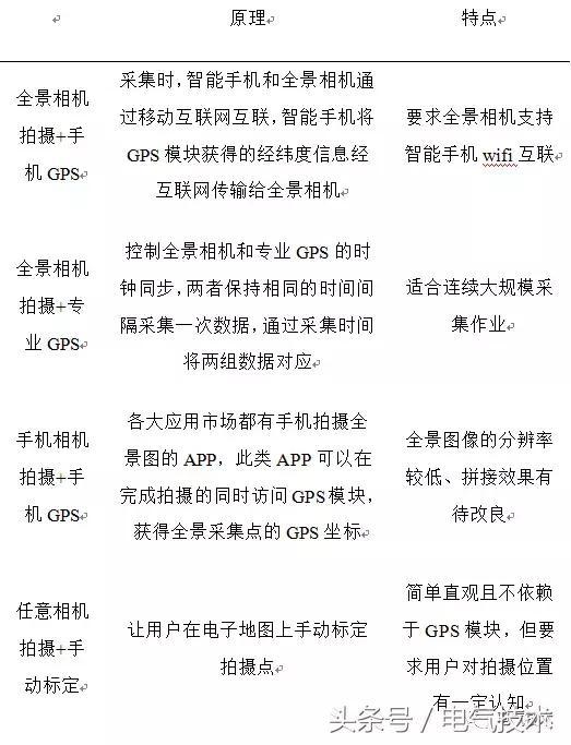 作為全景數(shù)據(jù)的重要組成部分,全景采集點坐標的準確獲取對于輸電線路可視化運維管理的順利實施至關重要,而現(xiàn)階段全景采集點的GPS坐標獲取可通過如表2所示的途徑實施。而本文中,采用的是數(shù)碼相機拍攝+手動標定的方式來獲得全景采集點的GPS坐標。