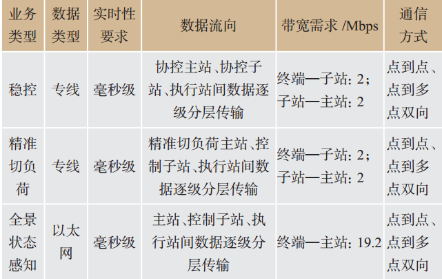 不同業(yè)務(wù)的實時性及帶寬需求見