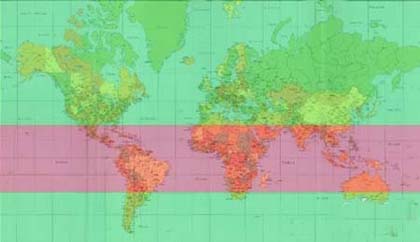 氣候不適宜數(shù)據(jù)中心選址的地區(qū)(紅色部分)