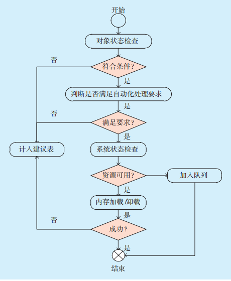 數(shù)據(jù)生命周期管理引擎收到策略引擎的request后,首先判斷是否滿足自動執(zhí)行的條件,是否能自動執(zhí)行取決于用戶的預(yù)定義參數(shù)。然后檢查系統(tǒng)狀態(tài)是否滿足執(zhí)行條件,如系統(tǒng)負(fù)載、文件系統(tǒng)空間。