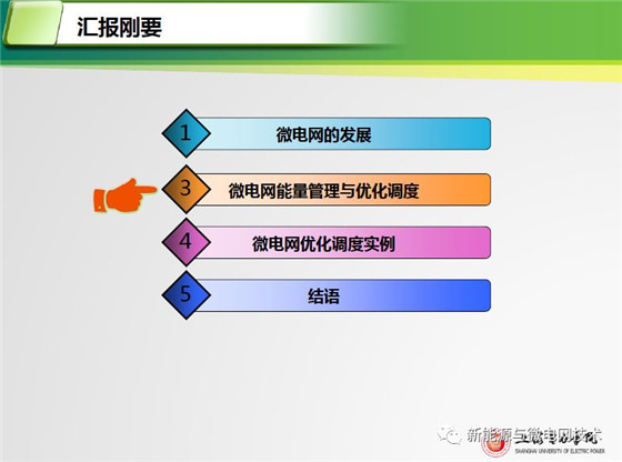 楊秀:我今天講的題目是微電網(wǎng)能量管理與優(yōu)化調(diào)度,我主要是講能量管理和優(yōu)化調(diào)度方面的內(nèi)容,從四個部分開始。