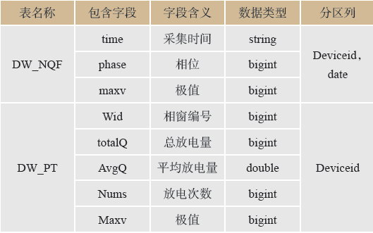 使用相同的SQL語(yǔ)法,依次創(chuàng)建基本參數(shù)表DW_NQF和放電譜圖表DW_PT,數(shù)據(jù)表字段描述見