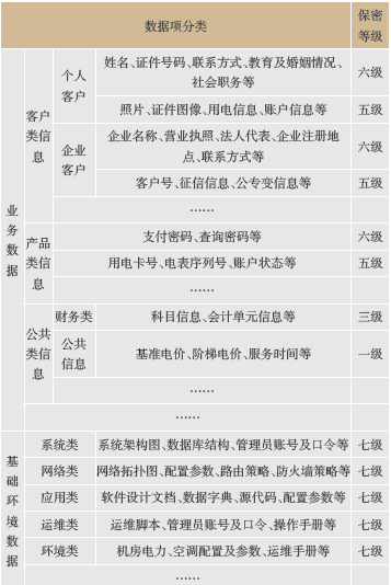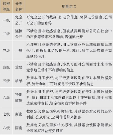 根據(jù)上述分類(lèi)定義,可由公司各業(yè)務(wù)部門(mén)牽頭,聯(lián)絡(luò)相關(guān)信息系統(tǒng)運(yùn)維單位,共同從業(yè)務(wù)和技術(shù)上對(duì)單一數(shù)據(jù)項(xiàng)分類(lèi)進(jìn)行保密等級(jí)賦值,隨后依據(jù)