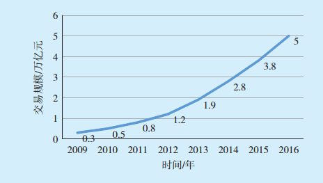 圖1 2009—2016年中國網(wǎng)絡購物市場交易規(guī)模增長趨勢Fig.1 The trade scale growth trend of China online shopping market among 2009-2016