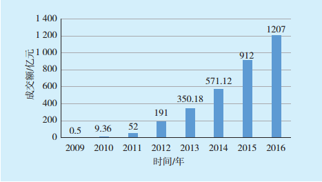 圖2 2009—2016年淘寶天貓雙11成交額Fig.2 The double 11 turnover of Taobao and TMALL websites among 2009-2016