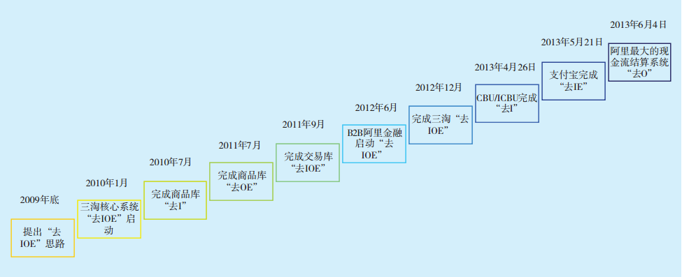 圖3 阿里巴巴集團去IOE進程Fig.3 The removing IOE process of Alibaba