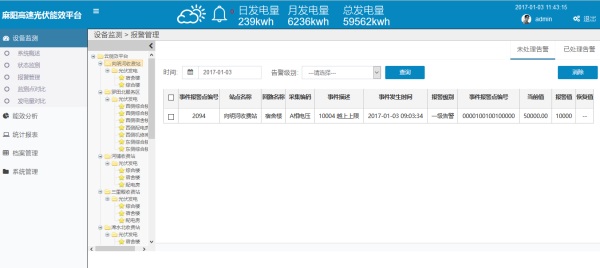 可以看到每個(gè)監(jiān)測(cè)點(diǎn)的日語(yǔ)年發(fā)電量情況,以及各個(gè)站點(diǎn)的總發(fā)電和一個(gè)時(shí)間段內(nèi)的發(fā)電量情況。