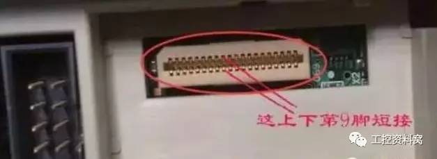 關(guān)掉PLC電源,打開PLC正上方的端蓋,如下圖,可以看到一個(gè)類似長(zhǎng)方形端口,面對(duì)端口,從左邊開始數(shù)到端口的第九個(gè)針腳,上下同是第9針腳。然后用很細(xì)的鑷子(或電線)將上下兩個(gè)第9腳短接。