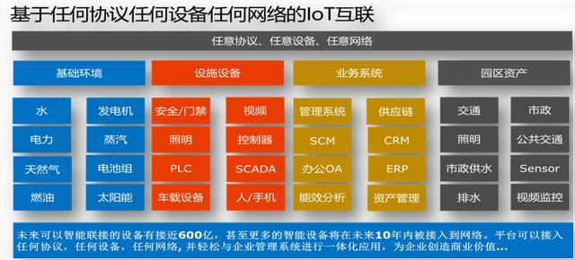 物聯(lián)網(wǎng)是智慧園區(qū)的物理基礎(chǔ),它是利用最新的射頻技術(shù)、傳感器技術(shù)、物聯(lián)網(wǎng)網(wǎng)關(guān)技術(shù)把實(shí)際設(shè)備和物體連接的一門技術(shù)。我們創(chuàng)新的利用中新智安PowerBus智慧管控平臺(tái)提供的各類硬件和軟件,集成園區(qū)企業(yè)所有自動(dòng)化領(lǐng)域內(nèi)和信息化領(lǐng)域內(nèi)的各類設(shè)備,支持各種開(kāi)放和私有系統(tǒng)及協(xié)議。