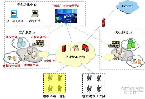云朵方案把企業(yè)私有云的安全問(wèn)題進(jìn)行了分解:1、云朵間的安全;2、云朵內(nèi)的安全。