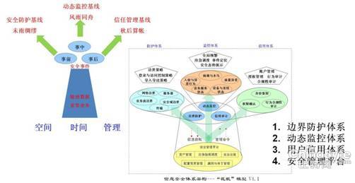 不同的云朵,邏輯上如同傳統(tǒng)安全方案設(shè)計(jì)中的“安全域”,具有明確的安全區(qū)域邊界,因此,云朵間的安全完全可以按照傳統(tǒng)的安全方案設(shè)計(jì)思路,部署思路可以參考“花瓶模型”的三條基線一個(gè)平臺(tái),網(wǎng)絡(luò)邊界與安全域邊界的安全防護(hù)基線;重要資源區(qū)域與核心匯聚的動(dòng)態(tài)監(jiān)控基線;用戶與運(yùn)維人員的信用管理基線;日常運(yùn)維與應(yīng)急處理的安全管理平臺(tái),具體的技術(shù)與管理要求,可以參照等級(jí)保護(hù)的要求,這里就不贅述了。