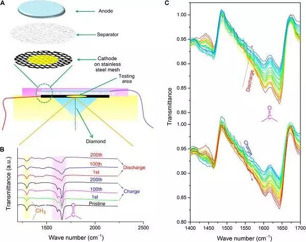 同時,團(tuán)隊(duì)研究人員創(chuàng)新性使用靜電勢計算方法結(jié)合原位紅外、拉曼和紫外可見光譜等實(shí)驗(yàn)手段,研究推演了有機(jī)醌類材料在電池反過程中的活性位點(diǎn)以及結(jié)構(gòu)變化,闡明了鋅與柱[4]醌的結(jié)合發(fā)生在碗狀柱[4]醌分子上方的兩個羰基和底部的四個羰基上,拓展了電化學(xué)理論與實(shí)驗(yàn)結(jié)合新方法。該團(tuán)隊(duì)進(jìn)一步構(gòu)建了有機(jī)水系鋅全電池,基于醌正極材料和理論上使用的最低鋅負(fù)極質(zhì)量進(jìn)行計算,能夠提供220瓦時每公斤的能量密度,遠(yuǎn)超目前使用的水系鉛酸電池,也與目前商化化的鋰離子電池相當(dāng)。