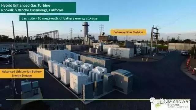 2016年起,南加州愛(ài)迪生公司(SCE)開(kāi)始嘗試儲(chǔ)能與傳統(tǒng)發(fā)電機(jī)組聯(lián)用的新型應(yīng)用模式。2017年4月,SCE、GE、Wellhead Power Solutions合作安裝運(yùn)行了全球首個(gè)燃?xì)廨啓C(jī)-儲(chǔ)能混合發(fā)電系統(tǒng)(Hybrid Enhanced Gas Turbine,Hybrid EGT)。該系統(tǒng)安裝于Norwalk & Rancho Cucamonga配電站,包括50MW燃?xì)廨啓C(jī)和11MW/4.3MWh電池儲(chǔ)能系統(tǒng)。