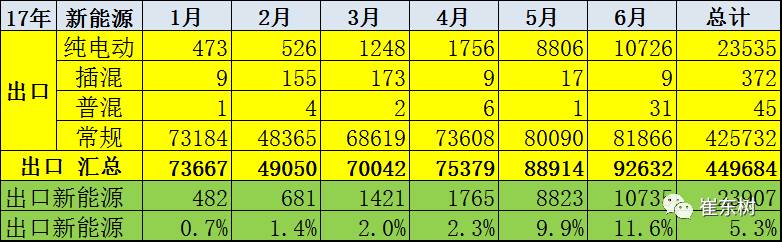 17年上半年新能源汽車出口走勢較強(qiáng),1-6月出口新能源車23907臺,其中絕大部分是純電動車型。而插混車型也有372臺。但與進(jìn)口形成反差的是出口普通混動僅有45臺,還是在6月的數(shù)量奇高的結(jié)果。