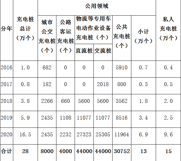 表12016-2020年分年度分類充電基礎(chǔ)設(shè)施建設(shè)目標(biāo)