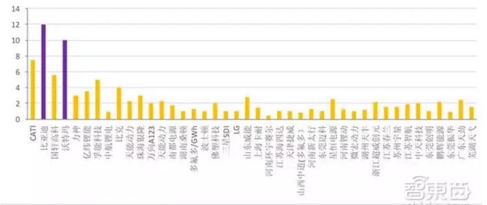 2016年動(dòng)力電池出貨量30.5GWh,小于2016年底廠商 101GWh 的產(chǎn)能規(guī)模,產(chǎn)能利用率 30%左右,但是對(duì)于鋰電池行業(yè)第一梯隊(duì)中的比亞迪、CATL的產(chǎn)能利用率分別高達(dá)69%、78%,要遠(yuǎn)高于行業(yè)平均水平,而部分產(chǎn)能規(guī)模偏小的鋰電企業(yè)的產(chǎn)能利用率普遍未達(dá)到 20%。