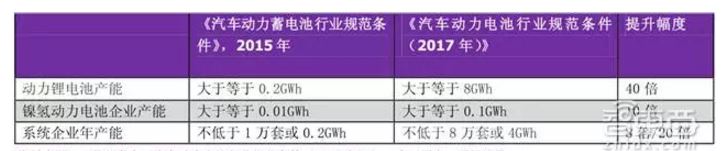 新規(guī)《汽車動(dòng)力電池行業(yè)規(guī)范條件(2017年)》對(duì)企業(yè)產(chǎn)能要求大幅提升