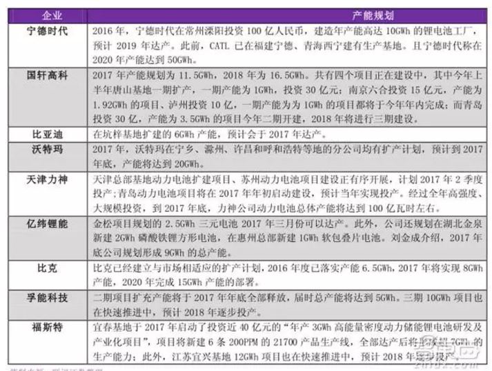 部分企業(yè)動(dòng)力電池產(chǎn)能擴(kuò)張規(guī)劃
