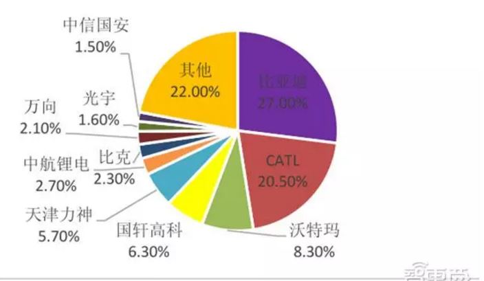 2016年動(dòng)力電池企業(yè)出貨量占比