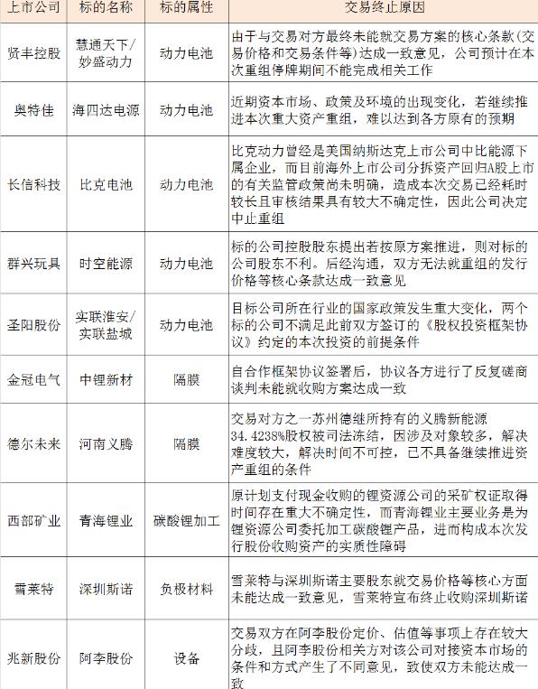隨著新能源汽車產業(yè)發(fā)展的不斷推進和市場成熟度不斷提升,優(yōu)質鋰電標越來越少,導致企業(yè)估值較前兩年呈現(xiàn)翻倍或數(shù)倍增長,雙方在收購價格上出現(xiàn)較大分歧,主要是標的企業(yè)認為收購價格過低,最后分道揚鑣。