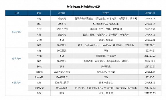 團隊的融資能力或成為考驗此類新興電動車制造企業(yè)的第一道難題,而目前嶄露頭角的新玩家均在相關(guān)領(lǐng)域表現(xiàn)的較為出色。上個月,蔚來汽車獲得10億美元融資。此輪融資由騰訊領(lǐng)投,而中國搜索引擎巨頭百度則是另一位投資者。