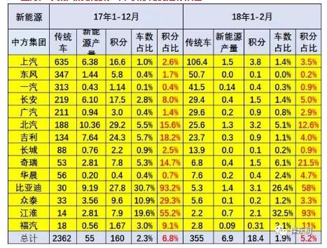 根據(jù)測算17年1-12月新能源汽車積分比例占比達(dá)6 8%,18年1-2月達(dá)到5 2%,這也是很好的表現(xiàn)。由于18年1-2月的的新能源車銷量大幅提升,18年1-