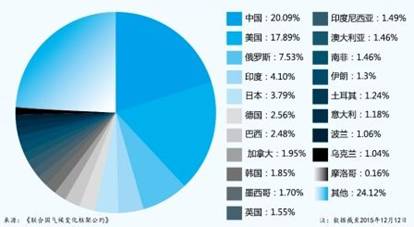 圖2 部分國(guó)家占全球溫室氣體排放比例