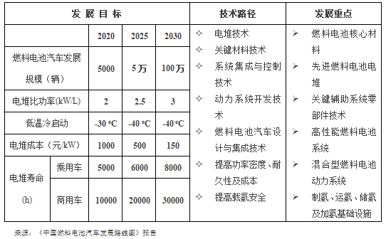 表2 中國(guó)燃料電池汽車(chē)發(fā)展路線