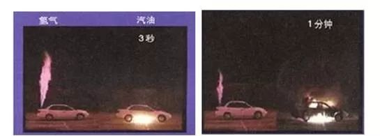 圖6 氫燃料汽車(chē)與汽油汽車(chē)的燃料對(duì)比試驗(yàn)(美國(guó)邁阿密大學(xué)Swain博士)