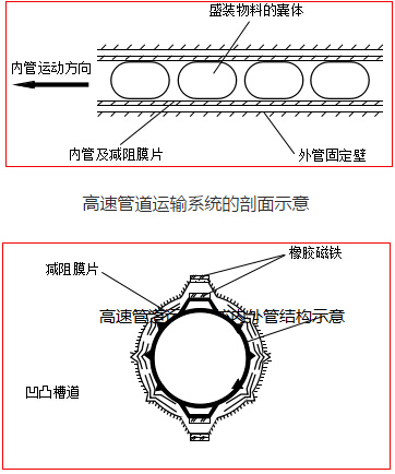 高速管道運輸系統(tǒng)的橫截面(內(nèi)管懸浮結(jié)構(gòu))示意