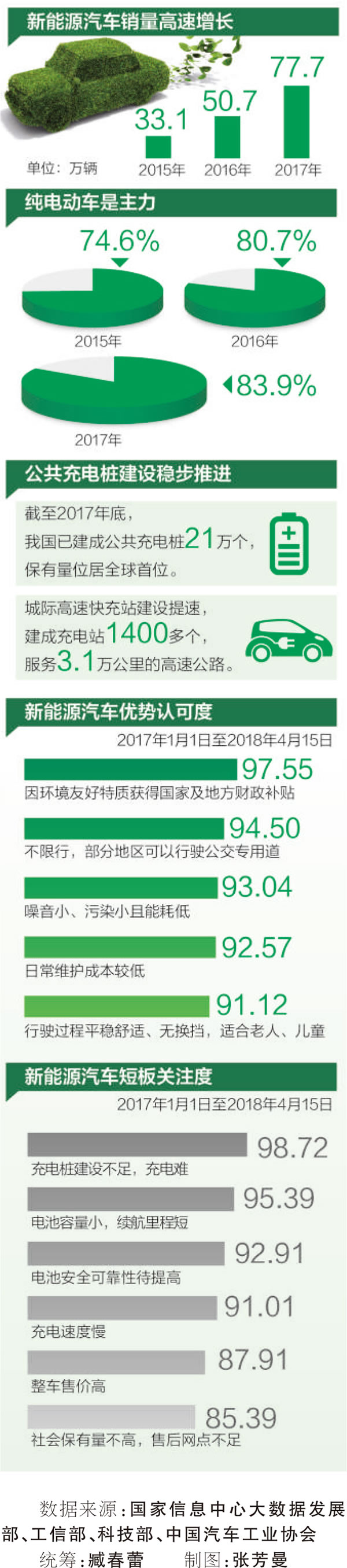 我國已經(jīng)連續(xù)三年位居全球新能源汽車產(chǎn)銷第一大國。從市場(chǎng)增速、產(chǎn)業(yè)鏈成熟度、投資熱度等指標(biāo)衡量,新能源汽車已成為近年來我國戰(zhàn)略性新興產(chǎn)業(yè)的一道亮麗風(fēng)景。但隨著行業(yè)競(jìng)爭(zhēng)不斷加劇,財(cái)政補(bǔ)貼的技術(shù)門檻日益增高,新能源汽車的高增長能否持續(xù)?充電基礎(chǔ)設(shè)施建設(shè)怎樣適應(yīng)消費(fèi)者的期待?