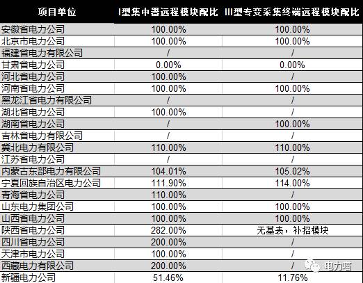 按以往招標經(jīng)驗,遠程通信模塊一般都是超配的,即配比率超過100%,但本次招標采集設備遠程模塊綜合配比率僅91.4%。