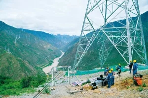 ▲五跨金沙江放線現(xiàn)場(chǎng)。