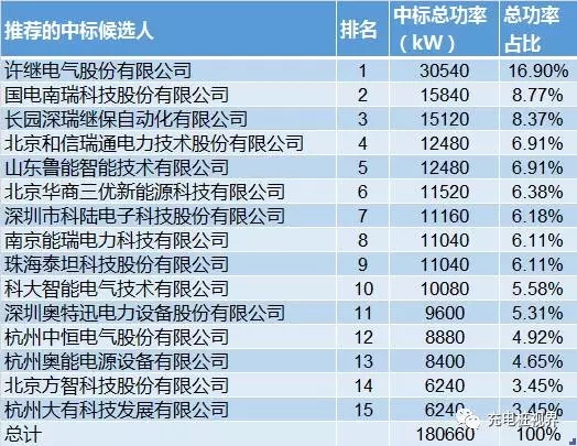 昨天,國家電網(wǎng)公布了2017年電源項目第五次物資招標(第三批充電樁)采購中標人信息,本次招標共有15家公司幸運中標。從數(shù)量上來看,許繼遙遙領先,共占據(jù)了總臺數(shù)的44 24%;從功率來看,排在前三位的分別是許繼