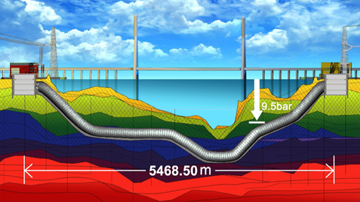 蘇通GIL綜合管廊工程的兩回1000千伏GIL管線,單相長約5.8公里,6相總長約35公里。此次貫通的隧道工程起于南岸(蘇州)引接站,止于北岸(南通)引接站,長5468.5米,是目前國內(nèi)江河埋深最深、水壓最高的隧道。其埋深最深處達(dá)-74.83米;水壓最高達(dá)0.8兆帕,是大氣壓的8倍,相當(dāng)于一個(gè)手指甲蓋大小的面積承受近10公斤的重量。江中地質(zhì)條件復(fù)雜,施工難度大,掘進(jìn)需穿越長江大堤及有害氣體層,沉降控制、風(fēng)險(xiǎn)防控要求極高。