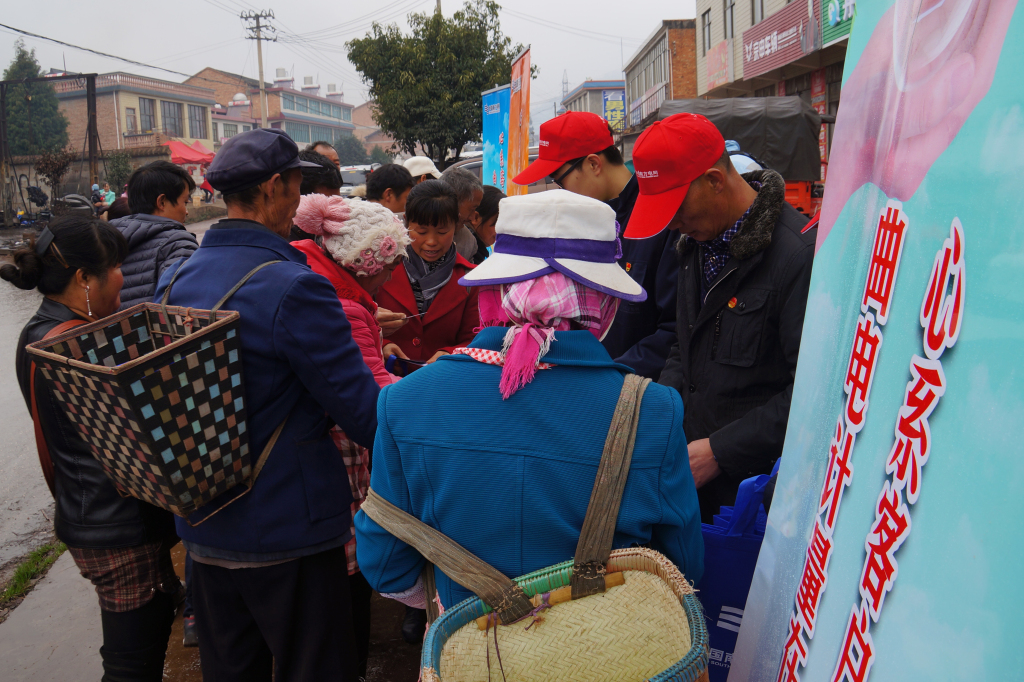 東山鎮(zhèn)當(dāng)天正好是趕集日,街上人來人往,志愿者們于是在街道上搭建了愛心服務(wù)驛站,發(fā)放當(dāng)?shù)乜蛻舴?wù)經(jīng)理服務(wù)名片和用電知識宣傳折頁,為前來圍觀的村民講解科學(xué)用電知識和電力故障報(bào)修流程,免費(fèi)為村民們發(fā)放印有南網(wǎng)品牌形象的購物袋、抽紙、筆和作業(yè)本等小禮品。“你們現(xiàn)在服務(wù)還是好的,搶報(bào)修還是快,感謝你們?yōu)槲覀冇秒娝龅囊磺小?rdquo;前來趕集的劉師傅高興地對志愿者們說道。